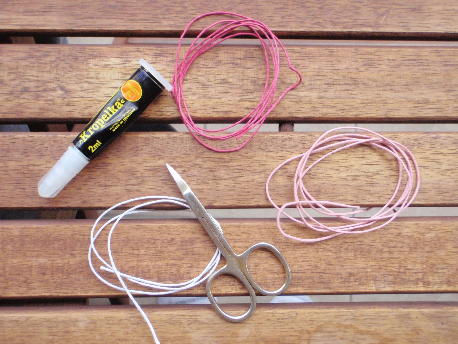 - sznurek woskowany o grubości 1mm (2x1m oraz 1x0,5m) - dostepny w każdej pasmanterii